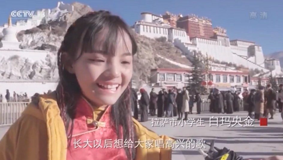 拉薩市小學生 白瑪央金:很開心,長大以后想給大家唱高興的歌。