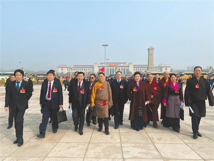 圖為西藏全國政協(xié)委員步入會場。記者 李洲 特約記者 旦增赤列 攝