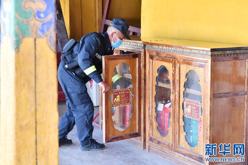 布達拉宮消防救援大隊隊員在巡邏期間檢查消防設(shè)施(3月4日攝)。新華社記者 孫瑞博 攝