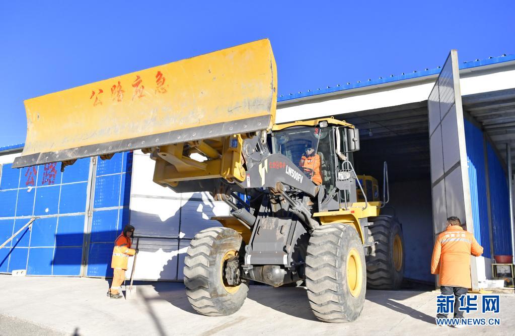 安多公路養(yǎng)護(hù)段工作人員在試用鏟雪機(jī)(1月13日攝)。新華社記者 張汝鋒 攝