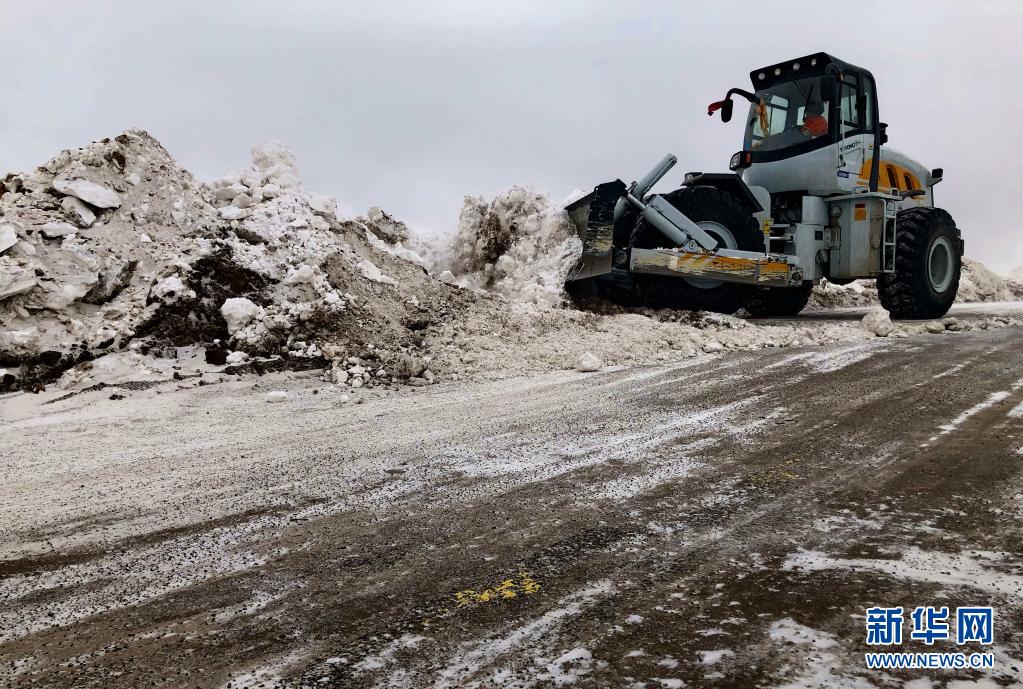 在國(guó)道109線K3378路段,安多公路養(yǎng)護(hù)段投入大型機(jī)械清除冰雪(2019年2月16日攝)。新華社發(fā)(邊巴央吉 攝)