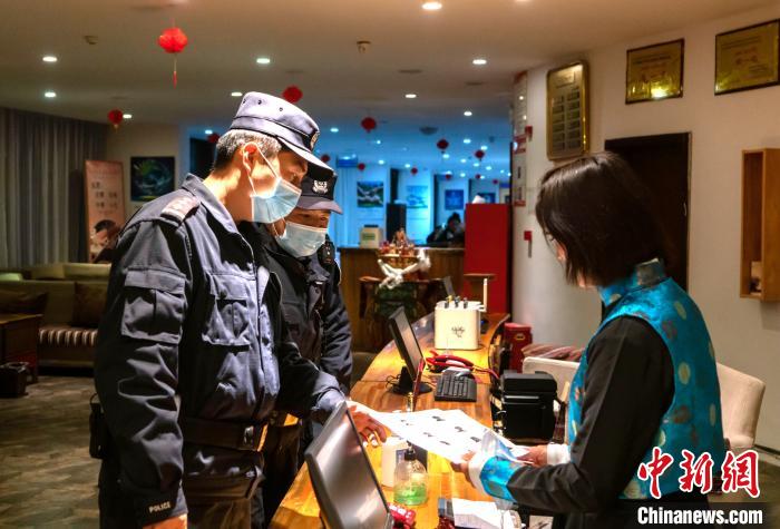 圖為民警對轄區(qū)行業(yè)場所進行日常排查。江才云旦 攝