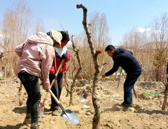 4月1日,西藏阿里地區(qū)普蘭縣的雙擁公園要比往常更熱鬧。當(dāng)?shù)馗刹咳罕娒χ灾矎年兾鬟\(yùn)來的紅葉李、桃樹、國槐、柳樹和薔薇。