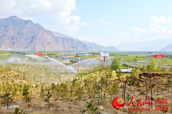 噴灌江孜沙棘。人民網(wǎng) 李海霞攝