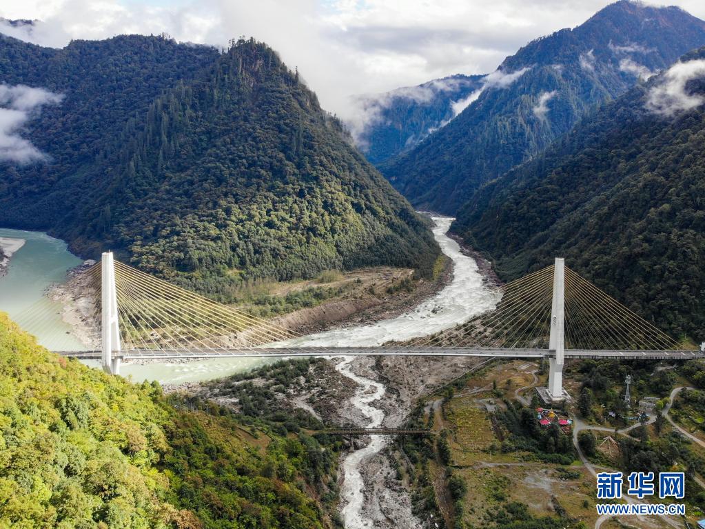 這是川藏公路通麥路段上的迫龍溝特大橋(2019年10月27日攝,無(wú)人機(jī)照片)。新華社記者 孫非 攝