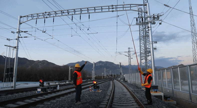 此次接觸網(wǎng)受電,由協(xié)榮站、扎囊站、山南站依次往林芝車(chē)站進(jìn)行,全線(xiàn)共有11座變電所、23個(gè)供電臂,整個(gè)受電過(guò)程歷經(jīng)1小時(shí)29分。