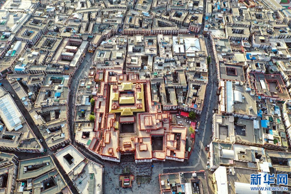 鳥瞰拉薩八廓街(2019年8月10日攝)。新華社記者 普布扎西攝