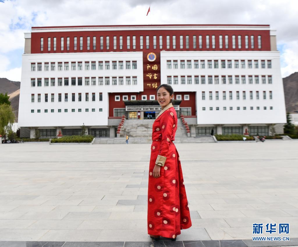 拉增在西藏大學(xué)圖書(shū)館前留影(5月7日攝)。新華社記者 晉美多吉 攝