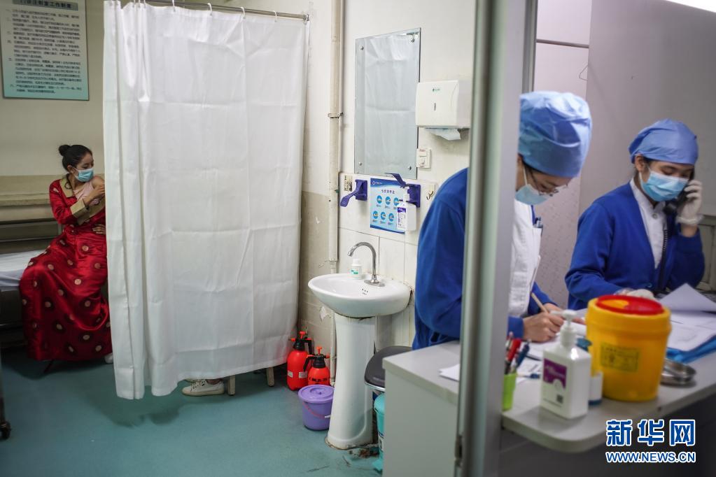 5月11日,拉增(左)在接受動(dòng)員劑注射。新華社記者 彭子洋 攝
