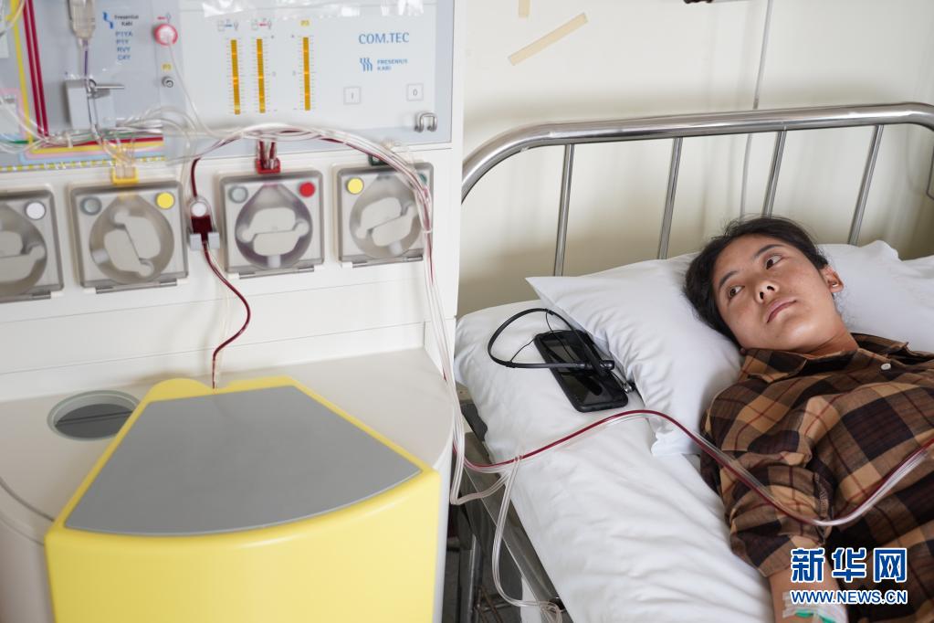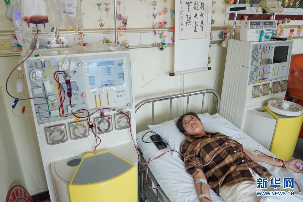 醫(yī)生摸著拉增的手和她聊天,造血干細(xì)胞整個(gè)采集時(shí)間需要近4個(gè)小時(shí)(資料圖片)。新華社記者 彭子洋 攝