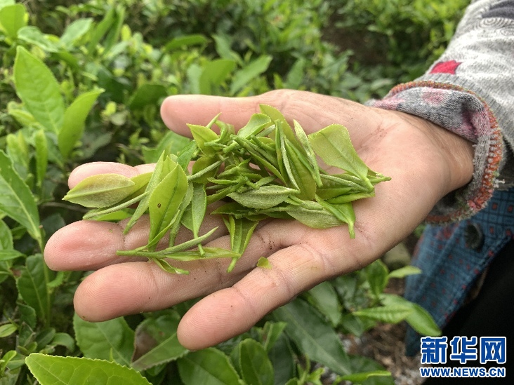 圖為剛采摘的茶葉(5月18日攝)。新華網 雪珍 攝