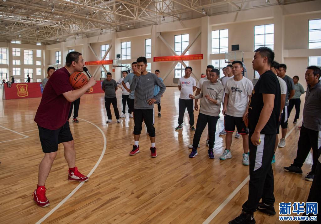 2020年9月,焦?。ㄗ笠唬┰谥袊?guó)籃球協(xié)會(huì)E級(jí)教練員培訓(xùn)班(西藏站)實(shí)踐課程上為學(xué)員進(jìn)行技術(shù)講解。新華社記者孫非攝