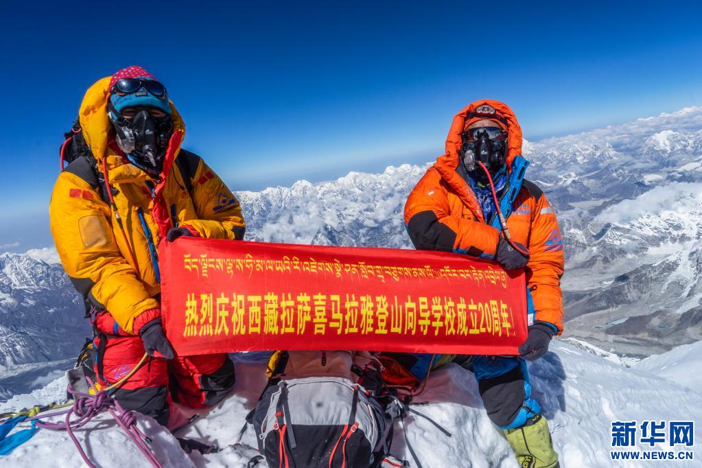 2019年5月24日,西藏拉薩喜馬拉雅登山向?qū)W(xué)校的向?qū)冊(cè)谥榉屙斏蠎c祝學(xué)校成立20周年。新華社發(fā)(扎西次仁攝)