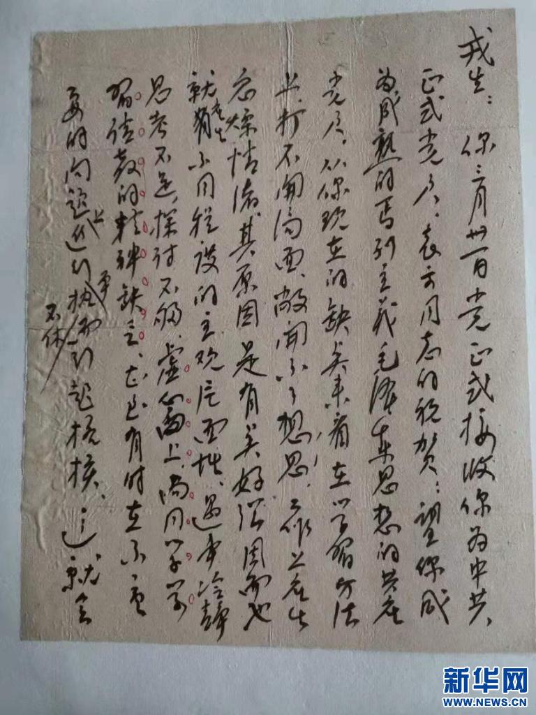 “戎生……我一生,只知為黨為人民,不知為私,你媽媽也是一樣。生出你們兄弟妹以來,均寄托出去了,不能照顧你們周到,現(xiàn)在你們均長成人了,也很努力求進(jìn)步,這就很好,對我在邊疆工作也是很大的鼓勵之一?!?/p>