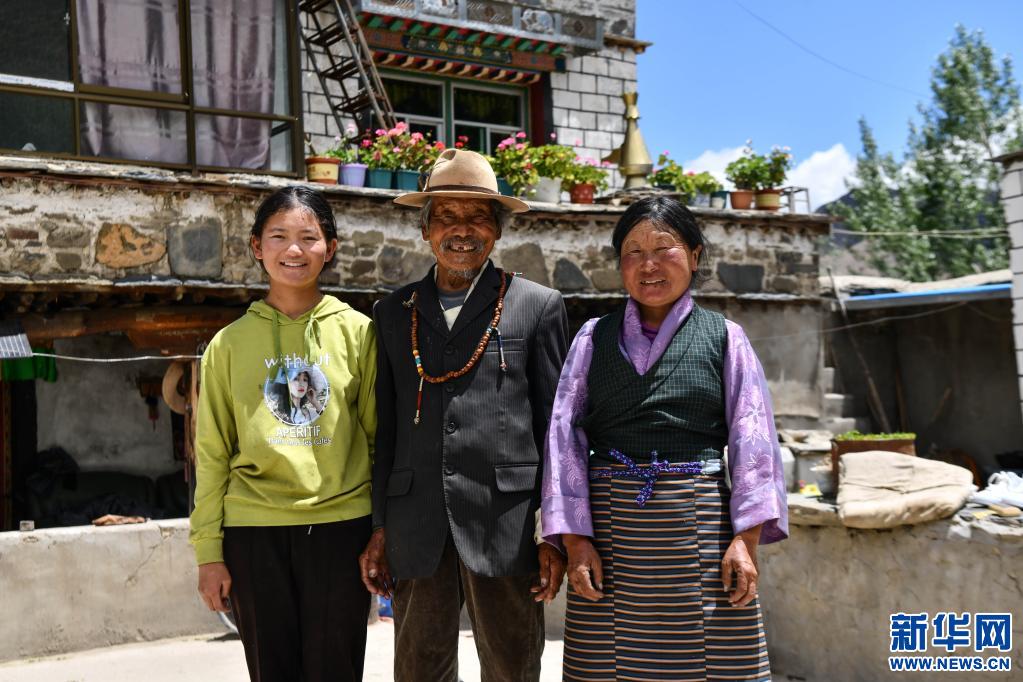 朗杰多吉(中)和家人合影(6月5日攝)。新華社記者 晉美多吉 攝