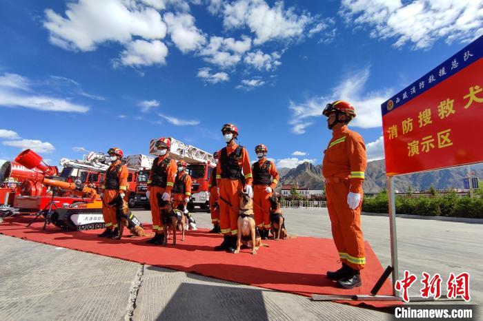 圖為活動(dòng)現(xiàn)場(chǎng)展示的消防搜救犬。江飛波 攝