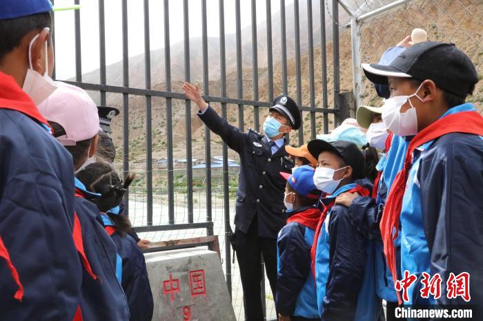 “同學(xué)們,現(xiàn)在你們看到的就是屹立在中尼邊境的9、10號界樁,界樁代表著國家的形象,我們要像愛護(hù)自己的眼睛一樣愛護(hù)、守護(hù)它?!逼仗m出入境邊防檢查站民警格桑倫珠正在為學(xué)生們講述中尼邊境界碑的故事。