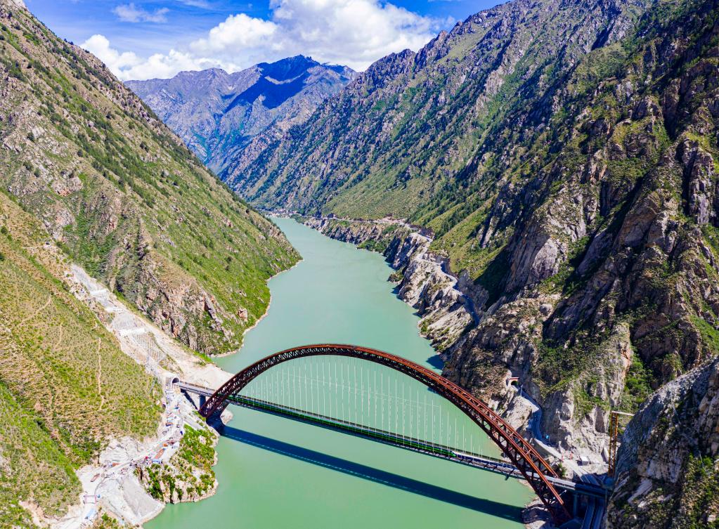 ——藏木雅魯藏布江雙線特大橋位于西藏山南市加查縣境內(nèi),全長525.1米、主拱跨徑430米,耐候鋼選材、管內(nèi)混凝土配制、橋梁設(shè)計(jì)與施工等建設(shè)關(guān)鍵技術(shù)突破了世界性難題。記者近日看到,大橋橫跨于碧綠的雅江,兩端接連隧道,氣勢宏大壯觀。