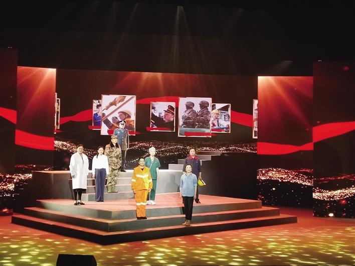 鑄牢中華民族共同體意識,根本是加強共同體的建設(shè),重點是發(fā)揮文化浸潤作用。朗誦劇《光輝永頌》用戲劇的方式延續(xù)文化培根鑄魂的精神力量,深情回望西藏在中國共產(chǎn)黨的領(lǐng)導(dǎo)下,走過的和平解放、民主改革、建設(shè)西藏和黨的十八大以來以習(xí)近平同志為核心的黨中央對西藏的關(guān)心與厚愛的各個歷史階段,向為西藏美好生活做出過犧牲與貢獻(xiàn)的無名英雄以及張國華、孔繁森、卓嘎央宗姐妹等先鋒模范致敬,向武警、教師、民警、科研工作者、環(huán)衛(wèi)工人等各行各業(yè)、各個崗位上的堅守者和奮斗者致敬,讓觀眾在革命先驅(qū)、愛崗敬業(yè)的紅色故事中學(xué)習(xí)黨史,堅定信念。