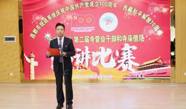 7月2日,昌都市委統(tǒng)戰(zhàn)部以慶祝中國(guó)共產(chǎn)黨成立100周年、西藏和平解放70周年“為黨贊頌”為主題,舉辦全市第二屆寺管會(huì)干部和僧尼演講比賽,市委常委、統(tǒng)戰(zhàn)部長(zhǎng),市政協(xié)黨組副書(shū)記澤仁俊美出席,市委宗教工作領(lǐng)導(dǎo)小組成員單位負(fù)責(zé)人和強(qiáng)巴林寺、卡若區(qū)寺管會(huì)干部代表、僧尼代表觀看了比賽。市委組織部、市委宣傳部、市委統(tǒng)戰(zhàn)部、市民委、市文化局、市宗教局等單位負(fù)責(zé)人擔(dān)任評(píng)委。