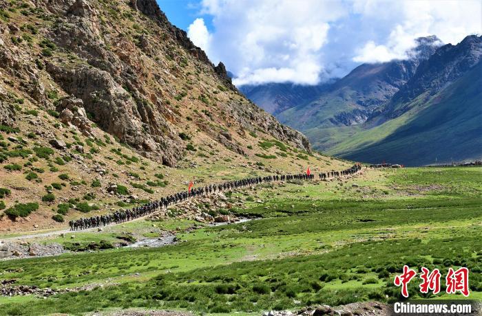 圖為西藏軍區(qū)某合成旅在野外拉練,隊伍負重前行。念美多杰 攝