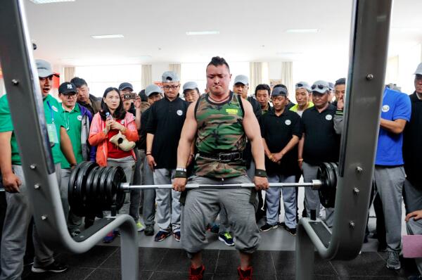 拉薩市城關(guān)區(qū)首屆健身大賽上,一位市民參加負(fù)重比賽。(2016年5月26日)。新華社記者 張汝鋒 攝