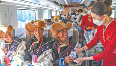 拉林鐵路位于青藏高原岡底斯山與喜馬拉雅山之間的谷地,90%以上的線路走行于海拔3000米以上,地形地質(zhì)條件極其復(fù)雜。經(jīng)過6年多的施工,建設(shè)者們在保護(hù)好生態(tài)環(huán)境的基礎(chǔ)上,攻克一系列全國性、世界性罕見難題,創(chuàng)造了高原鐵路建設(shè)奇跡。延伸的鐵路、飛馳的列車,串起雪域高原上的“團(tuán)結(jié)線”,促進(jìn)各民族交往交流交融;鋪就增收致富的“幸福路”,推動產(chǎn)業(yè)轉(zhuǎn)型升級,助力西藏自治區(qū)實現(xiàn)高質(zhì)量發(fā)展。(版式設(shè)計:蔡華偉)