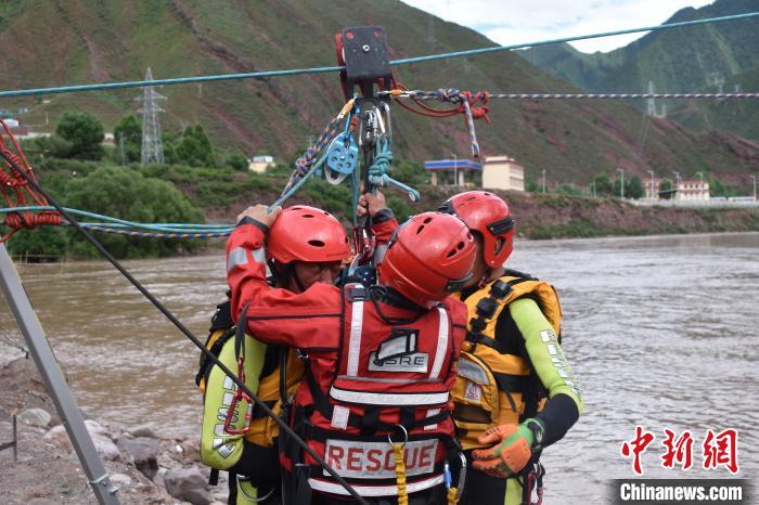 圖為山洪災(zāi)害防汛演練中模擬運(yùn)送傷員。昌都市森林消防支隊(duì) 攝