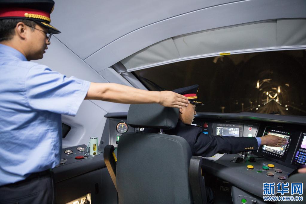 在從拉薩開往林芝的列車上,列車司機(jī)駕駛火車通過隧道(7月26日攝)。新華社記者 金立旺 攝