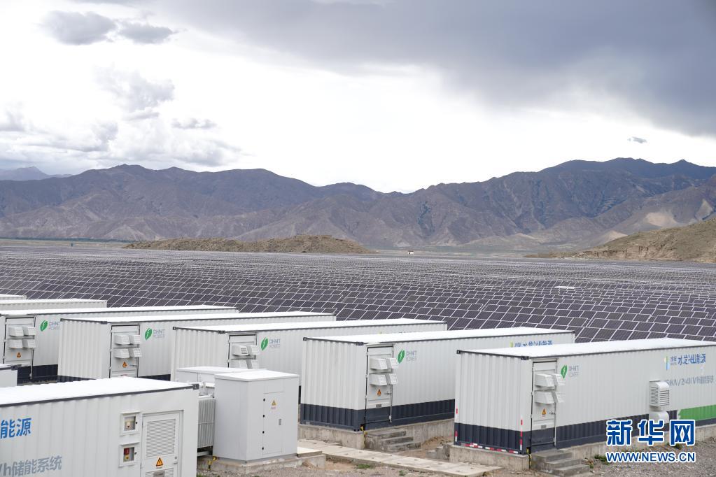 日喀則市江當現(xiàn)代生態(tài)產(chǎn)業(yè)示范園內(nèi)的“光伏+儲能”電站(7月15日攝)。新華社記者 劉洪明 攝