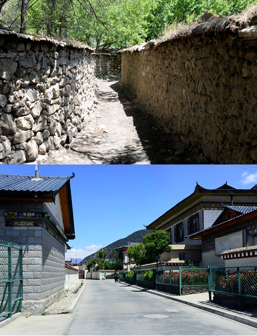 巴吉村新(下)舊(上)村貌對(duì)比。巴宜區(qū)委宣傳部供圖