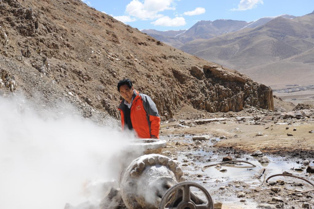 中國工程院首位藏族院士多吉在觀察羊八井地?zé)豳Y源(2010年9月6日攝)。新華社發(fā)