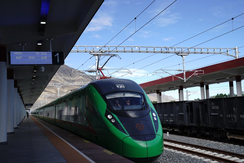 拉林鐵路動車組??吭谏侥宪囌荆?021年6月21日攝)。新華社記者劉洪明 攝
