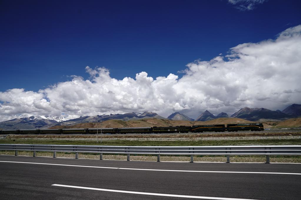 列車行駛在青藏鐵路拉薩市當(dāng)雄縣境內(nèi)(2021年6月28日攝)。新華社記者劉洪明 攝