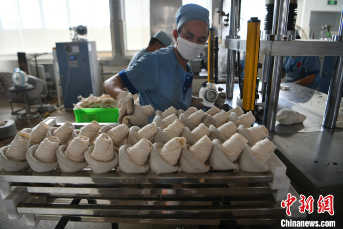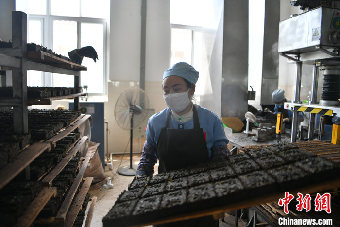 圖為8月12日,工人正在生產邊銷磚茶。中新社記者 劉冉陽 攝