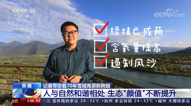 總臺央視記者 馬力:在西藏,超過八成的人口都集中在雅魯藏布江、怒江、拉薩河等“兩江四河”流域。2016年開始,西藏展開了“兩江四河”流域集中連片植樹造林工程,涉及全區(qū)所有地市。經(jīng)過5年的根植,西藏大江大河沿線已經(jīng)被31萬畝的綠植環(huán)繞,在70多萬名生態(tài)護林員精心呵護下,綠植已經(jīng)成蔭,空氣含氧量提高了,風(fēng)沙也得到了有效的遏制。