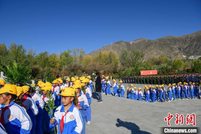 現(xiàn)場(chǎng),西藏各族少年兒童放聲獻(xiàn)唱《我們是共產(chǎn)主義接班人》,在深情的《獻(xiàn)花曲》中,禮兵抬起花籃,緩步走向烈士紀(jì)念碑,將花籃擺放在紀(jì)念碑基座上。西藏自治區(qū)領(lǐng)導(dǎo)仔細(xì)整理花籃緞帶后,和各族各界群眾代表一起繞行紀(jì)念碑一周,深切緬懷為西藏和平解放、民主改革和社會(huì)主義現(xiàn)代化建設(shè)建立不朽功勛的革命先烈。