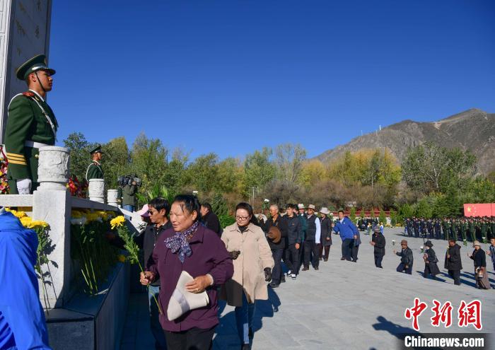 圖為9月30日,在西藏自治區(qū)拉薩市烈士陵園,干部群眾向革命烈士紀(jì)念碑獻(xiàn)花。貢嘎來(lái)松 攝