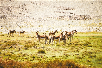 瑪旁雍措保護區(qū)內(nèi)的西藏野驢。趙曉宇攝