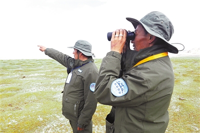 巡護過程中,他們不僅撿拾垃圾,還時不時用望遠鏡察看周邊是否有動物死亡、濕地草地是否有被破壞等現(xiàn)象。一旦發(fā)現(xiàn)問題,需及時上報相關部門。