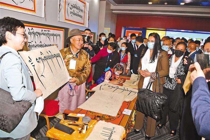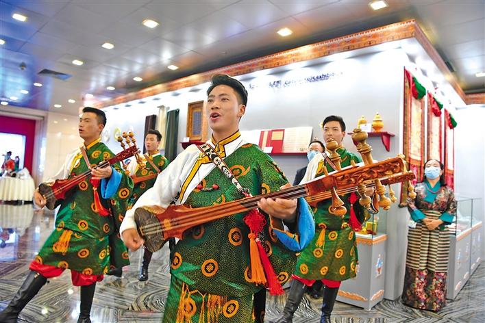 清朝道光皇帝冊封十一世達賴?yán)锝饍?、《中央人民政府和西藏地方政府關(guān)于和平解放西藏辦法的協(xié)議》等一件件歷史文物,充分證明了西藏自古以來就是祖國不可分割的一部分。藏文書法、傳統(tǒng)手工藝和酥油茶等高原飲食文化,充分展示了西藏與祖國各地在漫長歷史長河中的各民族廣泛交往、全面交流、深度交融。