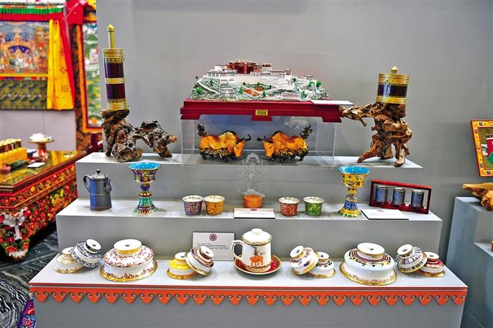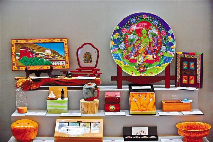 圖為西藏文創(chuàng)產(chǎn)品展示柜。記者 旦增西旦 攝