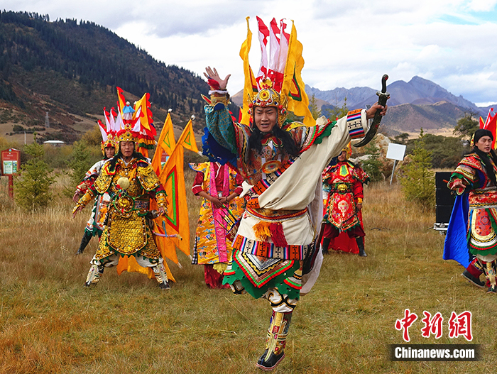 圖為10月19日,西藏自治區(qū)昌都市類烏齊縣,吉美德青表演嶺卓舞。 中新社記者 冉文娟 攝