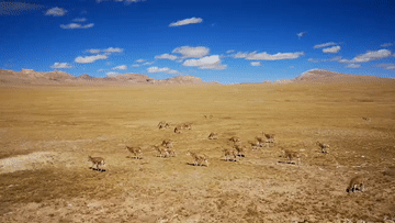 羌塘草原,平均海拔超過(guò)4700米。由于自然條件惡劣,這里被稱(chēng)為“人類(lèi)生命的禁區(qū)”,但卻是野生動(dòng)物的樂(lè)園。記者穿過(guò)羌塘草原,路遇一群藏羚羊。新華社記者 董琳娜 攝