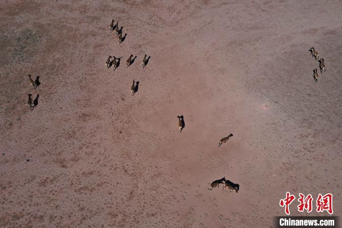 資料圖為西藏自治區(qū)那曲市雙湖縣境內(nèi)的藏野驢。(無人機(jī)照片) 中新社記者 貢嘎來松 攝