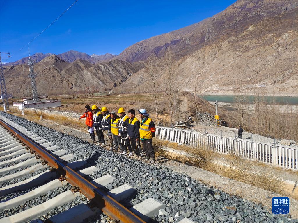 冬日暖陽下的雅魯藏布江河谷靜謐安詳,深峽江流澄碧蜿蜒,復(fù)興號在拉林鐵路上疾馳而過?;疖噺乃淼览锎┻^,急促的哨音吹響,加查橋隧工區(qū)工長仁青次仁和工友們開始每天例行的橋隧設(shè)備養(yǎng)護工作。