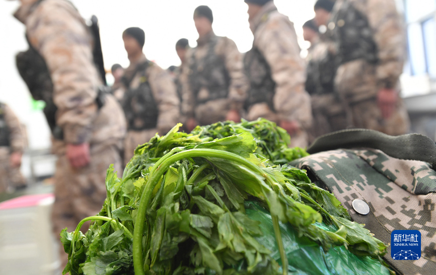 這是老阿媽送達(dá)哨所的綠色蔬菜(1月27日)。新華社記者 覺果 攝