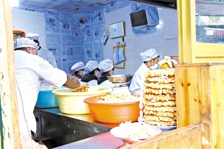 沖賽康一家店鋪內(nèi),員工正在趕制“德嘎”與“卡賽”。