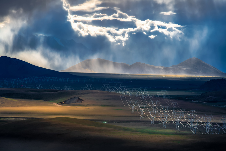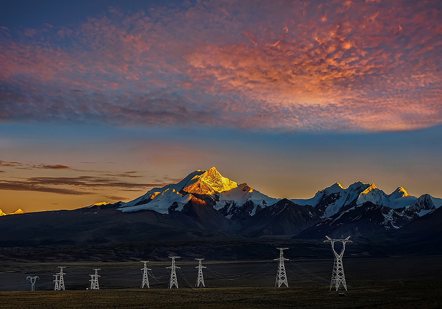 《西夏邦馬前的電力天路》。余云華 攝