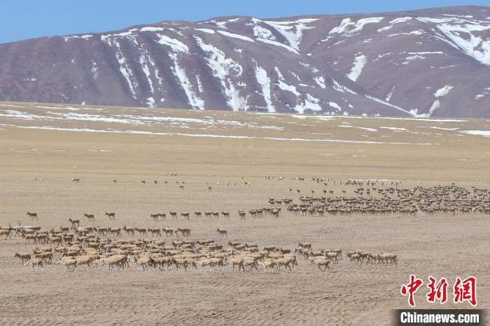 圖為3月27日,西藏阿里改則縣的藏羚羊群。邊巴 攝
